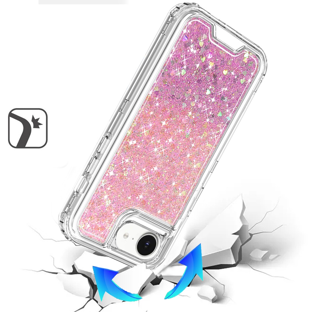 For iPhone 16E (E edition) / SE4 (2025) Epoxy Sticker Glitter 3in1 Shockproof Transparent Hybrid Case - Pink + Light Purple