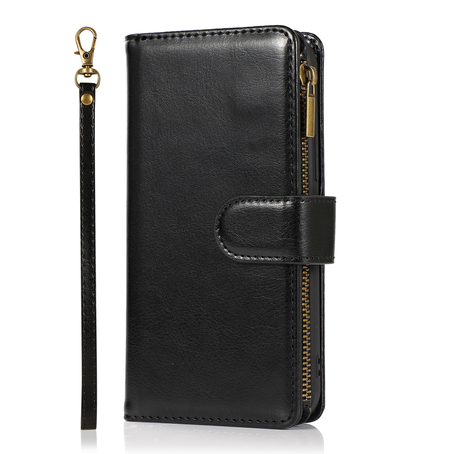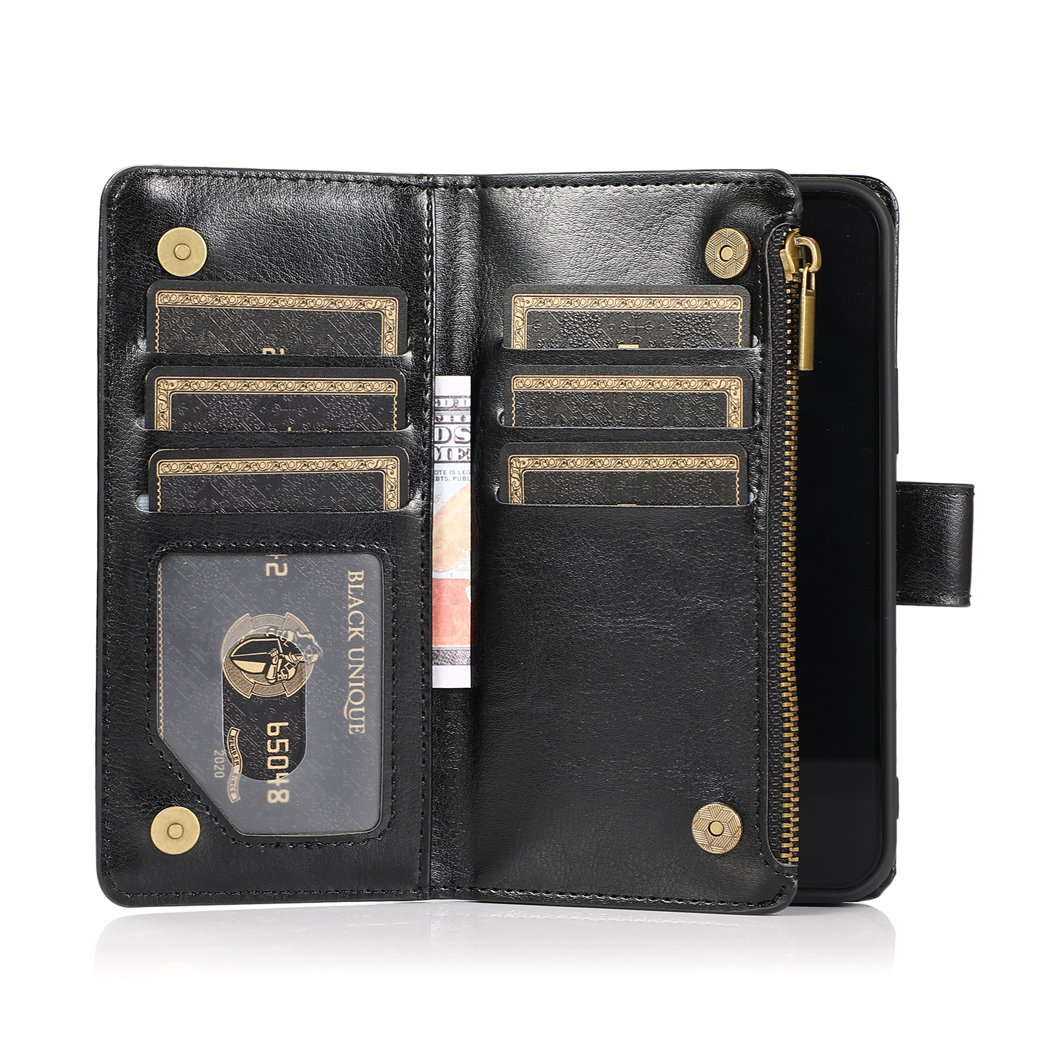 For iPhone 14 PLUS Luxury Wallet Card ID Zipper Money Holder Case Cover - Black