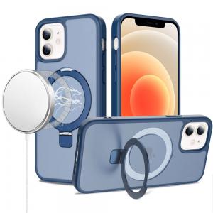 For iPhone 12 & iPhone 12 Pro Magnetic Matching Ring Stand Full Rotation Matte Hybrid - Blue