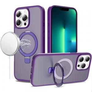 For iPhone 13 Pro Max Magnetic Matching Ring Stand Full Rotation Matte Hybrid - Dark Purple