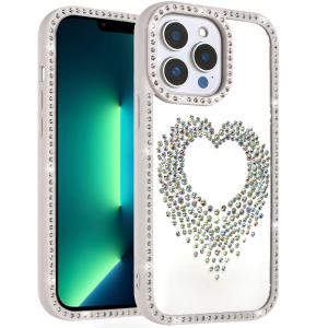 For iPhone 13 Pro Max Spread Love Glitter Shimmer Diamond Edged Hybrid Case - Beige