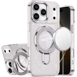 For iPhone 17 Pro Transparent Glitter Rotaional Magnetic Ring Stand HQ Hybrid - Clear
