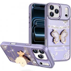For iPhone 17 Pro SPLENDID Diamond Glitter Ornaments Engraving Case Cover - Enchanted Butterfly Purple