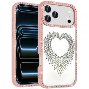 For iPhone 17 Pro Beautiful ANGEL Hearts Glitter Shimmer Diamond Edged Hybrid Case - Pink