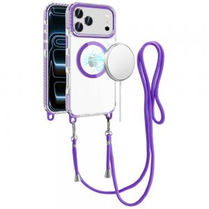 For iPhone 17 Pro Max Magnetic Ring Circle Bling Chrome 3in1 Hybrid Case - Purple