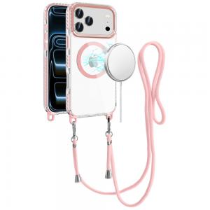 For iPhone 17 Pro Max Magnetic Ring Circle Bling Chrome 3in1 Hybrid Case - Pink