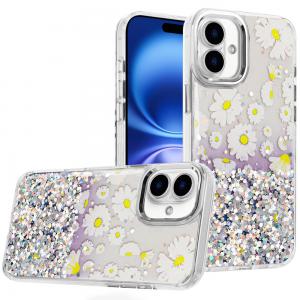 For iPhone 17 Shimmer Glitter Floral Design Thick TPU Case Cover - Silver