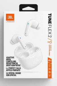 JBL Tune Flex 2 - True Wireless Noise Cancelling Earbuds Spatial Sound and Smart Ambient Technology, 6 mics for Perfect Calls, up to 48Hrs of Playback, IP54 Dust & Water Resistant - WHITE