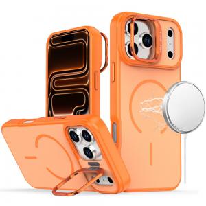 For iPhone 17 Pro Magnetic Matte Camera Metallic Stand Hybrid Case - Cosmic Orange