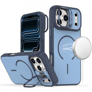For iPhone 17 Pro Magnetic Matte Camera Metallic Stand Hybrid Case - Blue