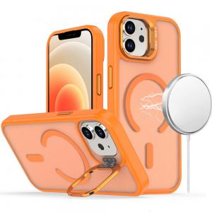 For iPhone 12 & iPhone 12 Pro Magnetic Matte Camera Metallic Stand Hybrid Case - Cosmic Orange