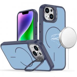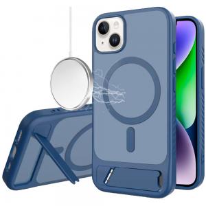 For iPhone 13/14 Matte Magnetic Hybrid with Metal Kickstand Case - Royal blue