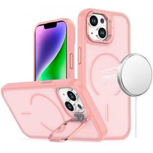 For iPhone 13/14 Magnetic Matte Camera Metallic Stand Hybrid Case - Pink