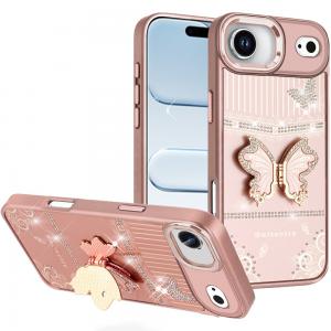 For iPhone 17 Air Cute Butterfly Ornaments Diamonds Shimmer Matching Metallic HQ Hybrid - Rose Gold