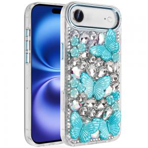 For iPhone 17 Air Butterfly Ornaments Diamond Bling Glitter Hybrid Case - Teal