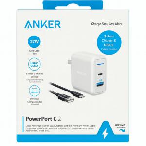 Anker 27W USB-C + USB-A Dual Port Wall Charger w/ USB-A to USB-C Cable – White -B2627JD1-01 (C7 ANKER-F)