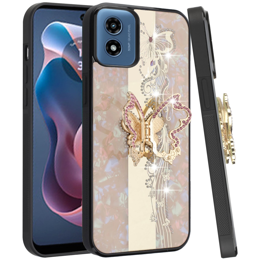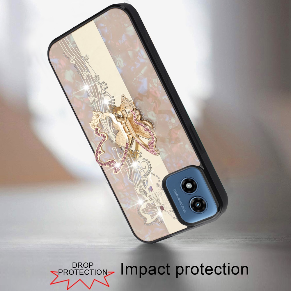 For Motorola Moto G Play 2024 SPLENDID Diamond Glitter Ornaments Engraving Case Cover - Enchanted Butterfly Gold