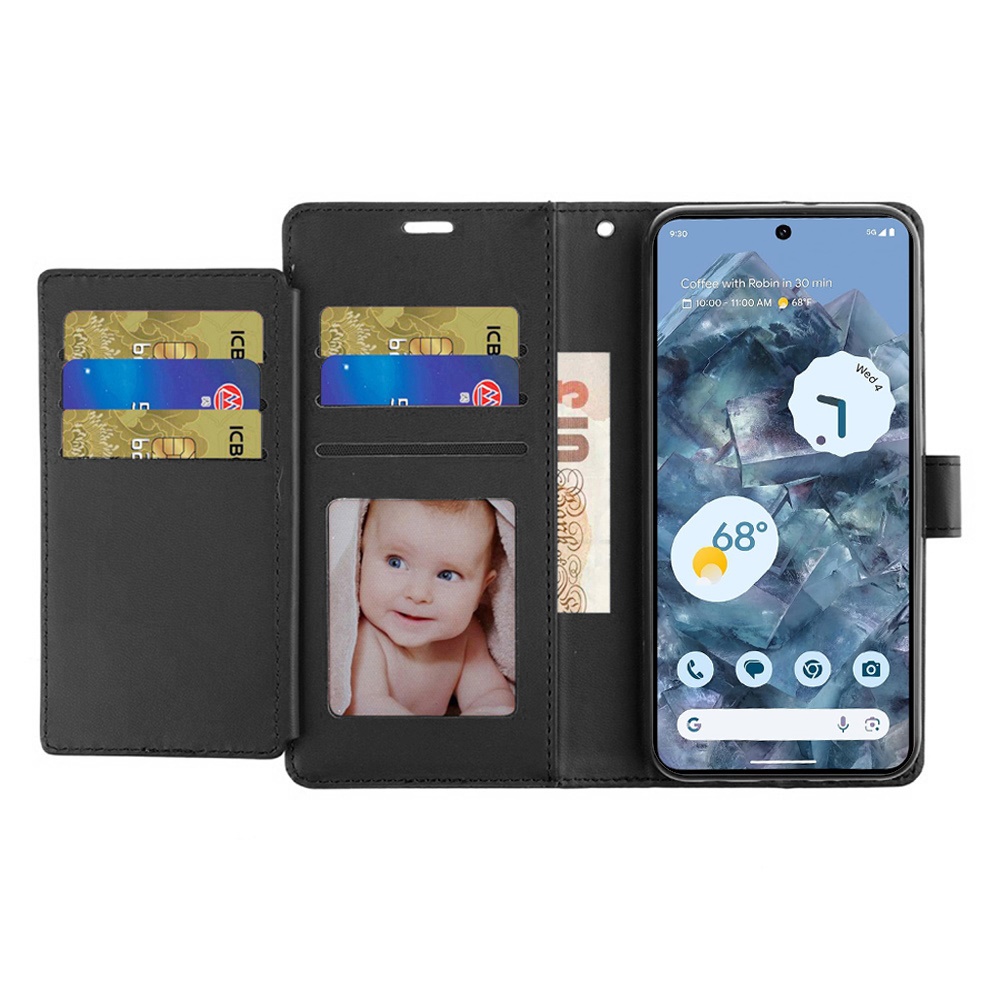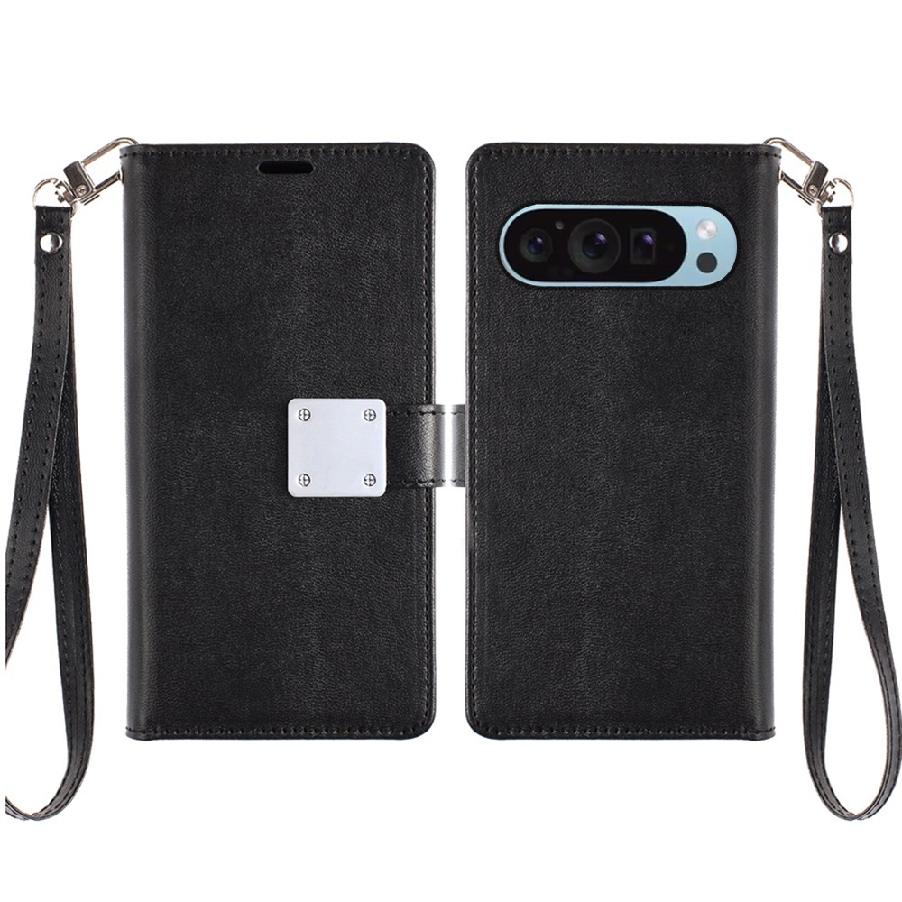 For Google Pixel 9 Pro 6.8inch Wallet ID Card Holder Case Cover - Black