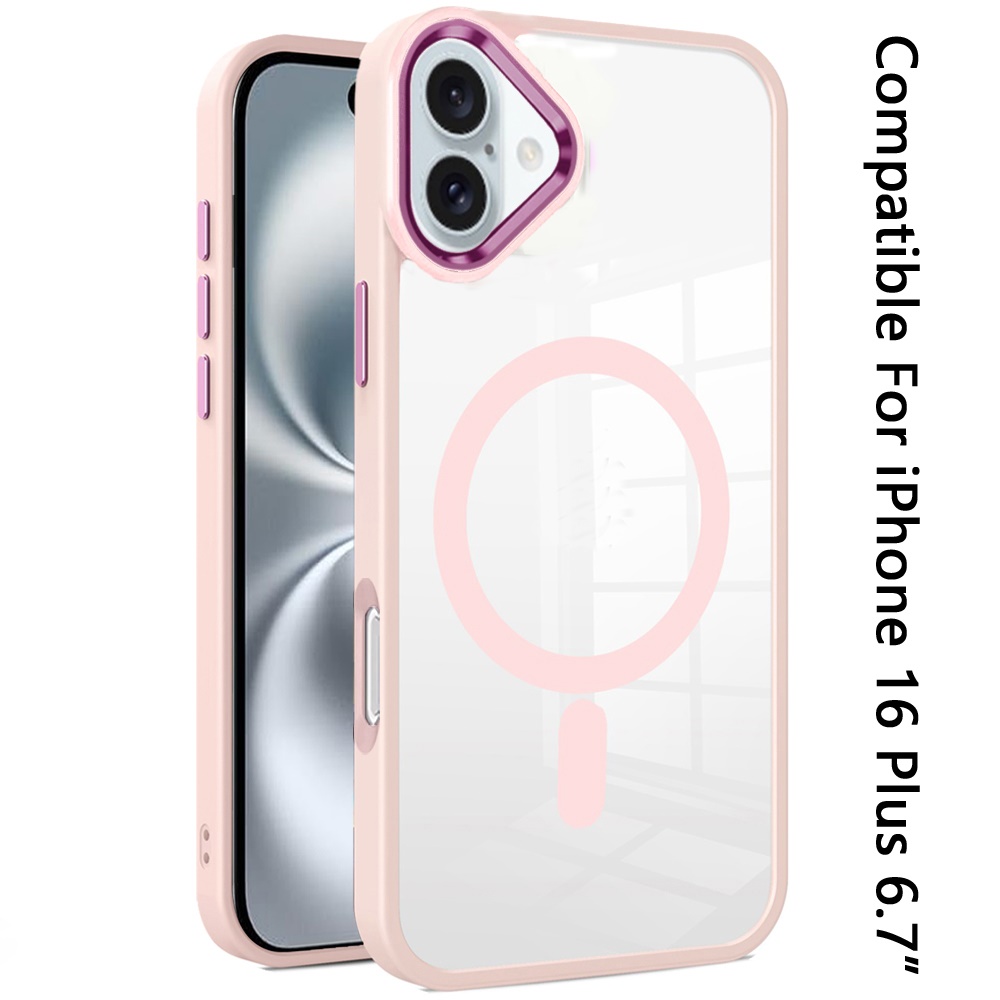 [PolyBag] For iPhone 16 Plus 6.7 inch Greatest Clear Acrylic Thick Metal Button Hybrid - Light Pink