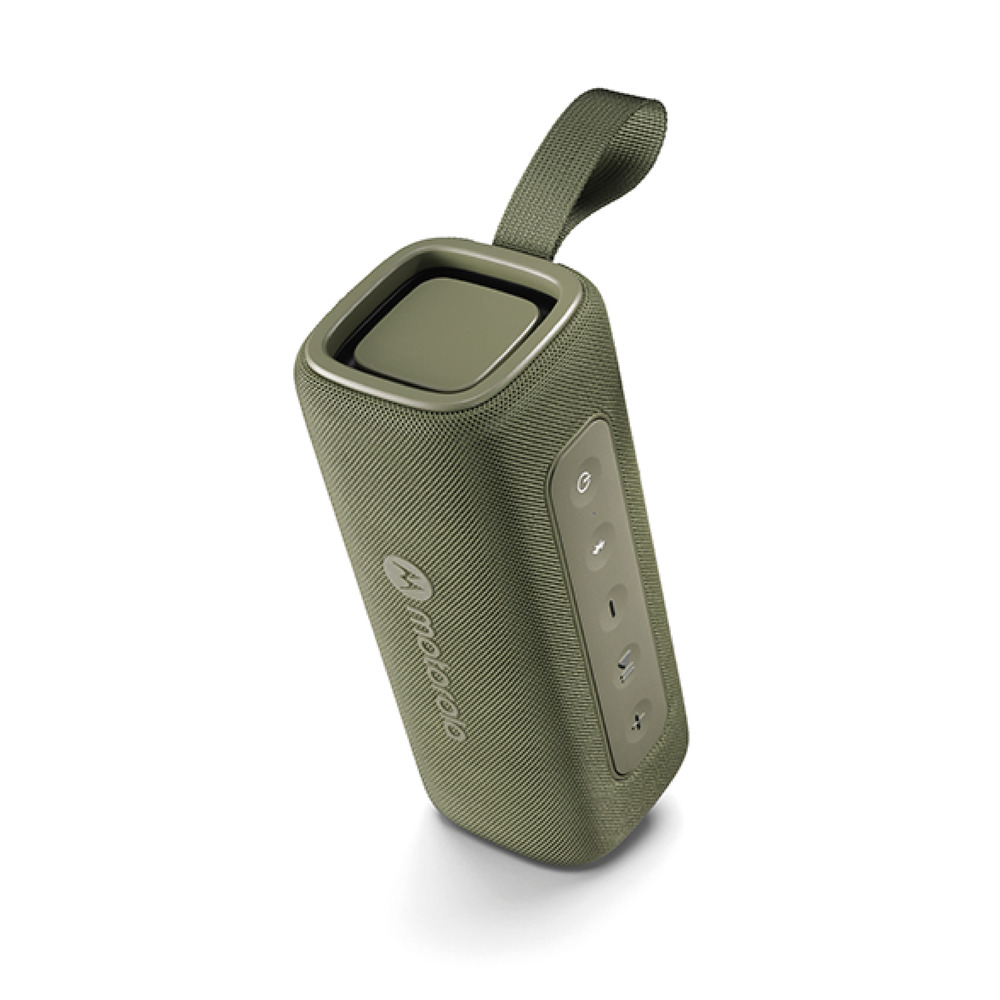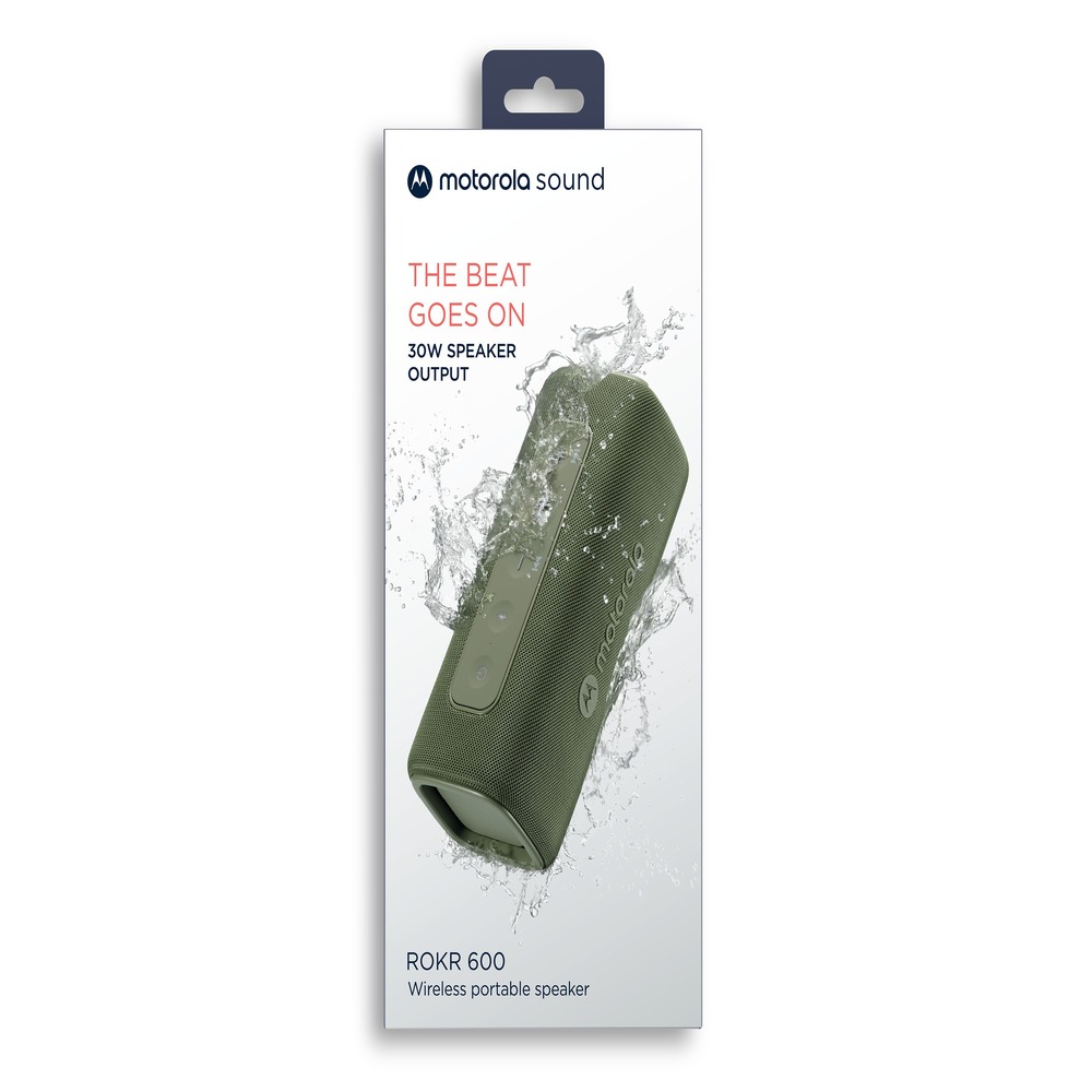 Motorola ROKR 600 This powerful 30W speaker with double passive radiators deliver enhanced bass and stereo sound with clear vocals. This portable speaker is waterproof and dustproof (IP67), with up to 6 hours' battery life. You can connect more than 20 speakers simultaneously with the Broadcast function to enjoy a full party experience - Olive Green (LANE B RACK 5)