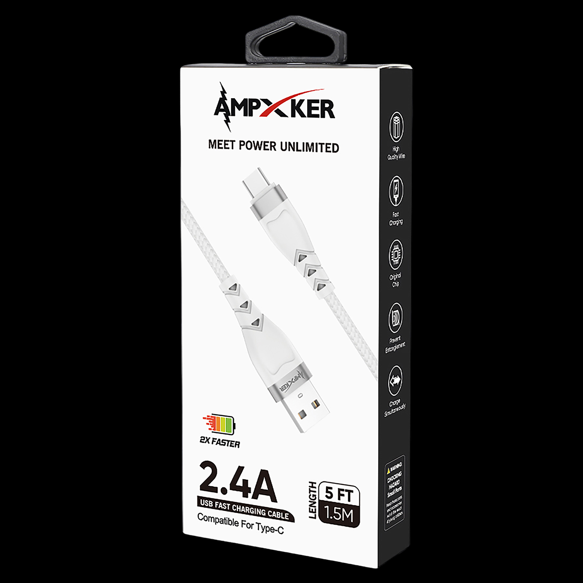 USB to Type C (PD) - Cable - 2.4 AMP - FAST Charging - Nylon Braided Aluminium Alloy - WHITE (LANE A7) (item#17)