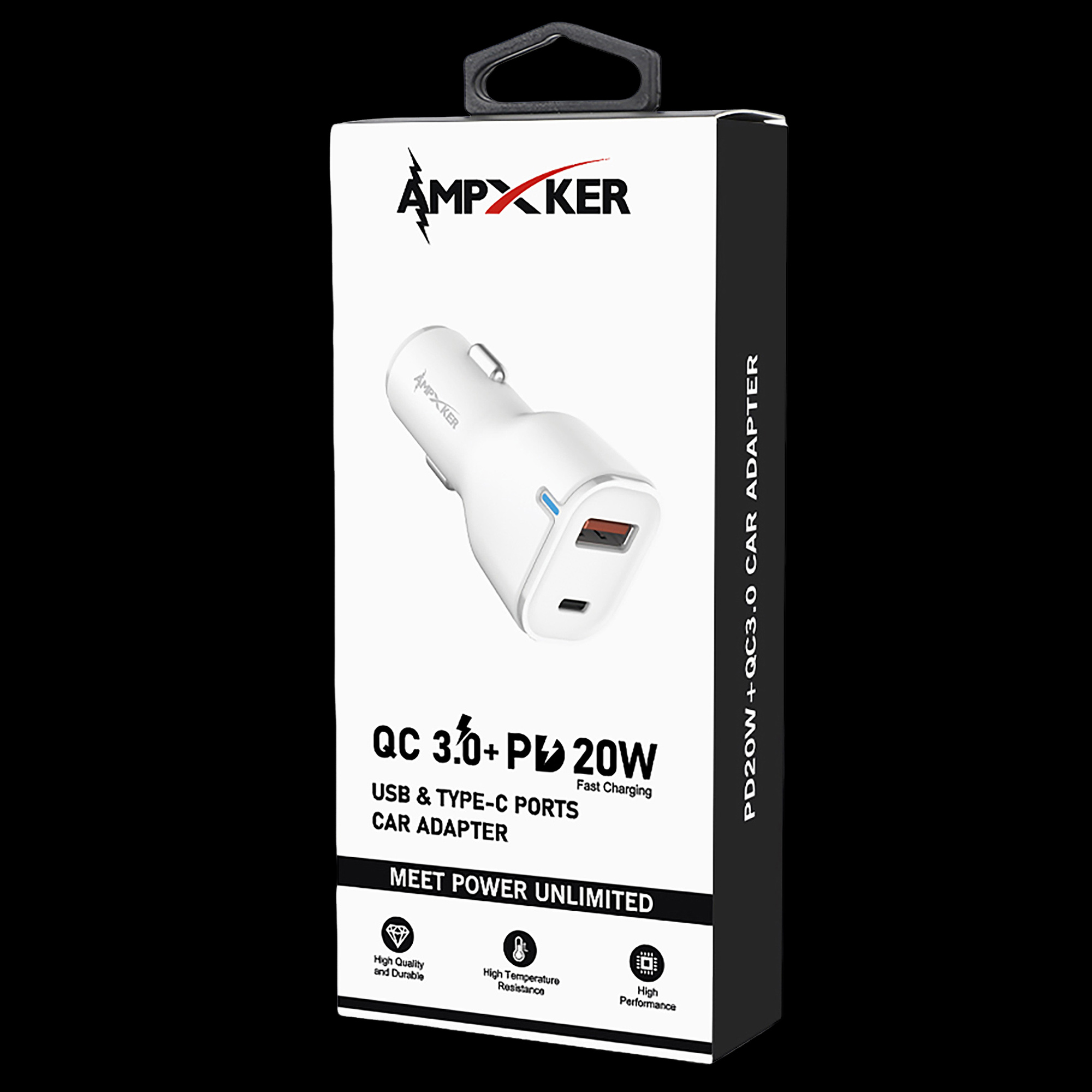 CAR - USB & Type C - Dual Port - Adapter - QC 3.0 Amp + PD 20W - WHITE (LANE A6 - item#5)