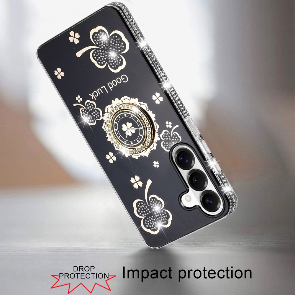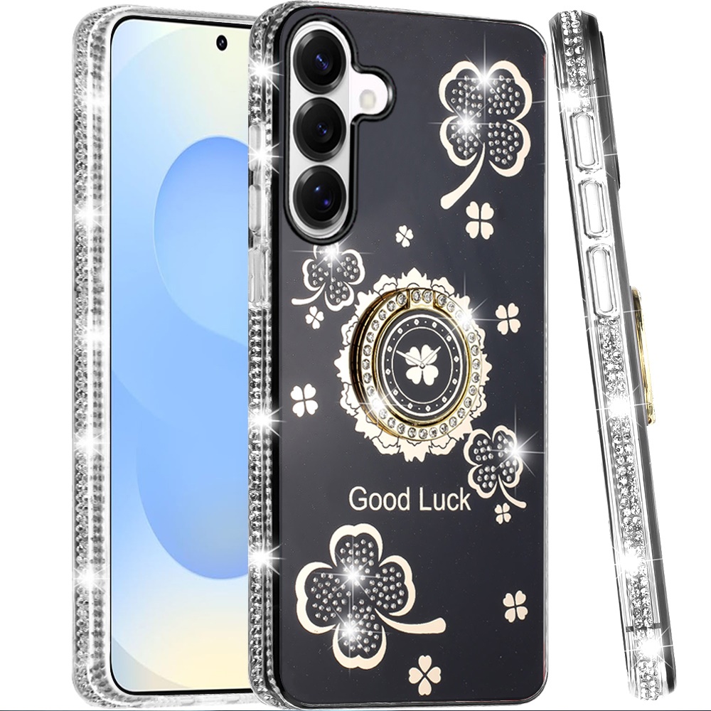 For Samsung s25 Plus/s24 Plus Splendid Glitter with Diamonds All Around Edges Ring Stand Case Cover - Black