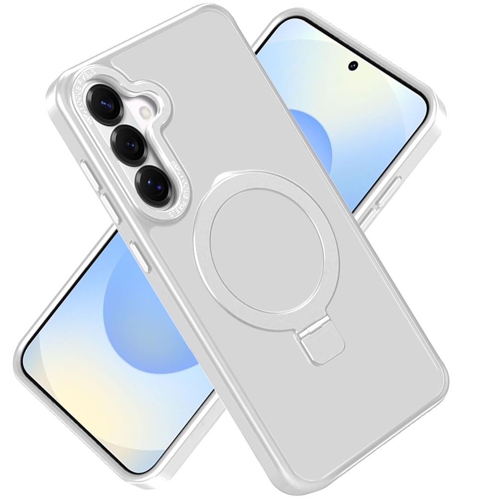 For Samsung s25 Plus/s24 Plus Metal Chrome Kickstand [Magnetic Circle] Shockproof Matching Camera Hybrid - Clear