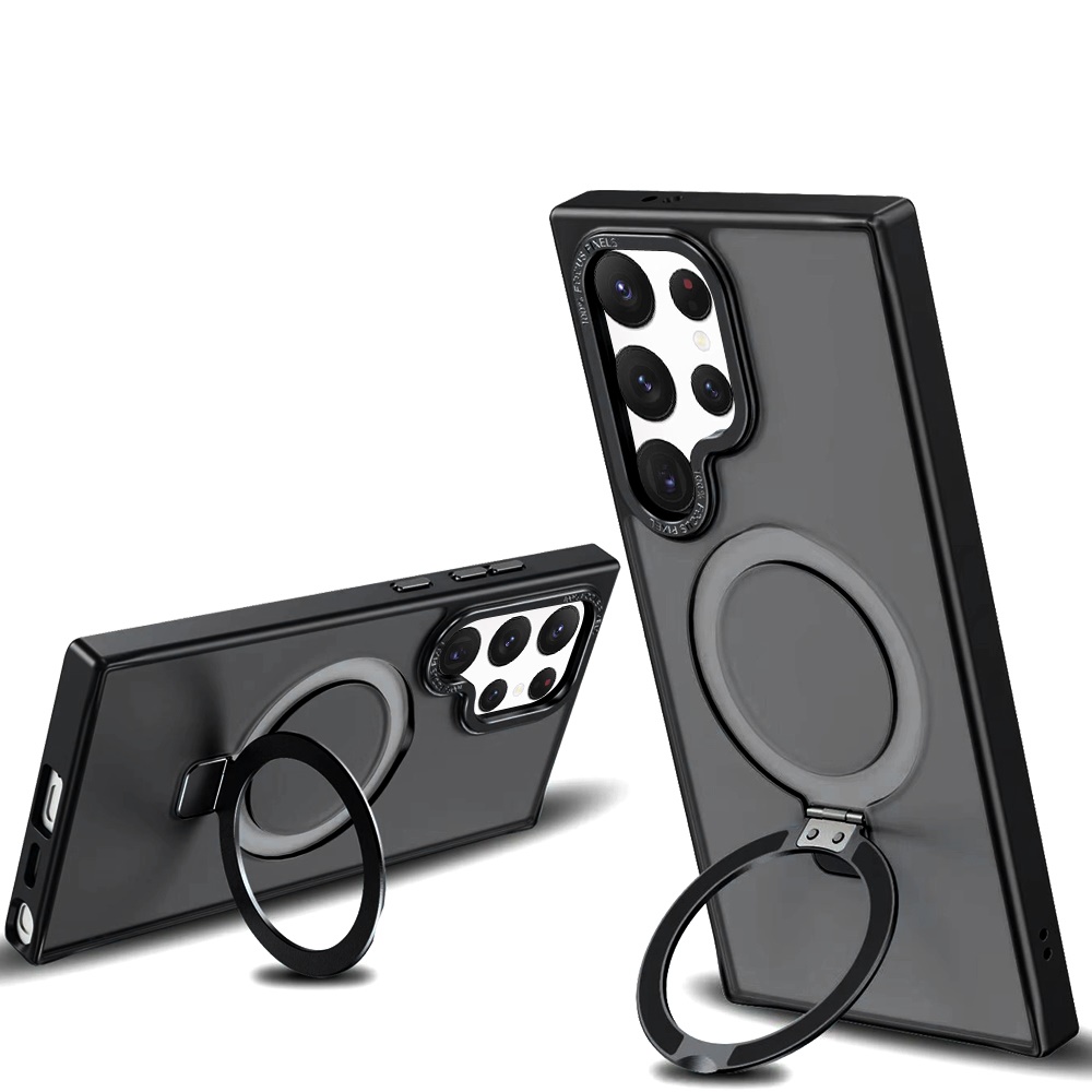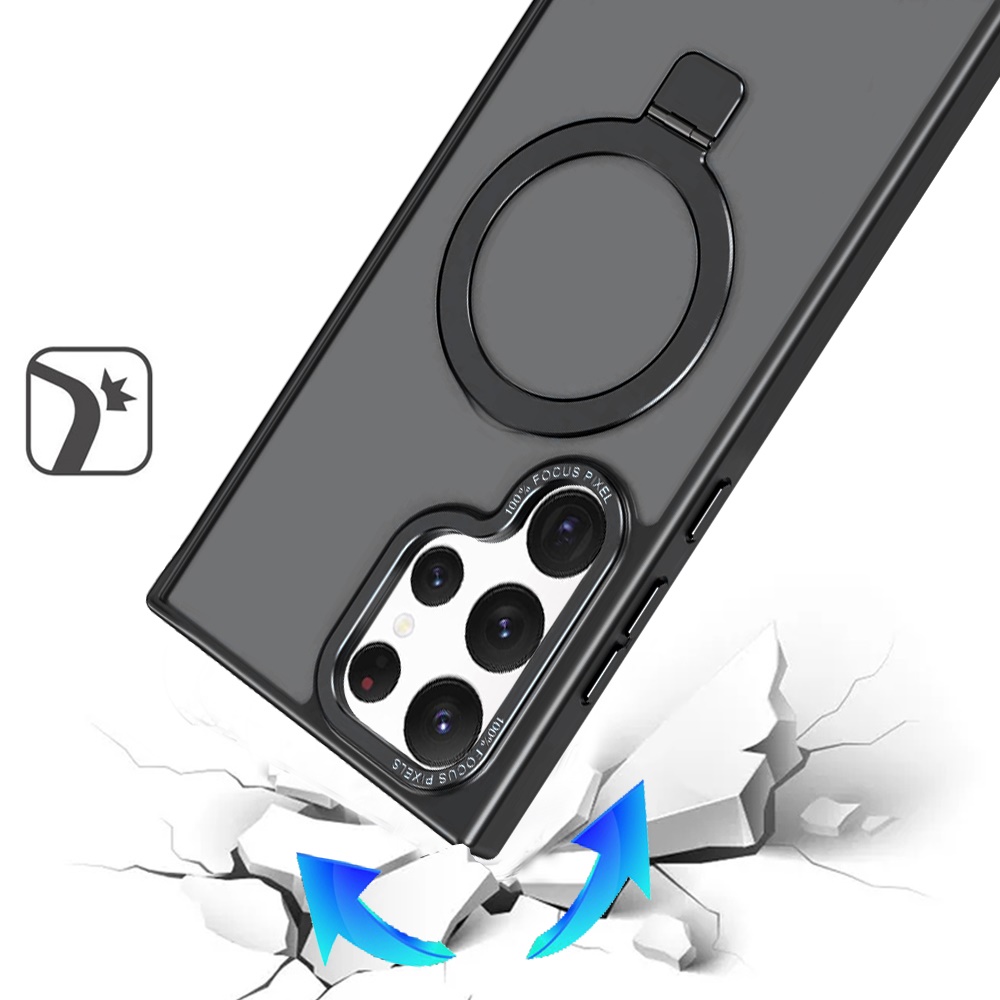 For Samsung Galaxy S22 Ultra Metal Chrome Kickstand [Magnetic Circle] Shockproof Matching Camera Hybrid - Black