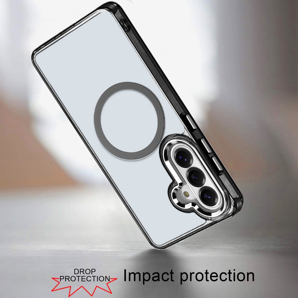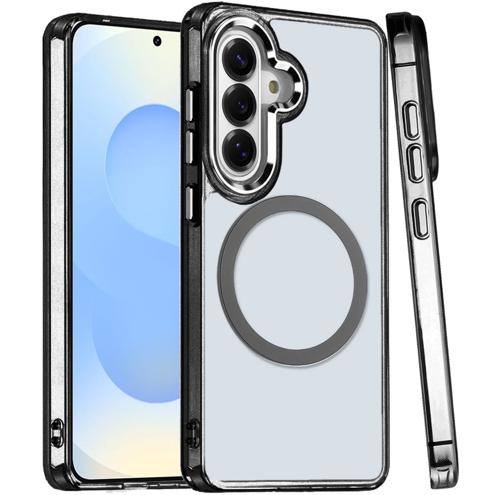 For Samsung s25/s24 Magnetic Circle Ring Transparent Premium Acrylic with Metal Buttons & Camera Raised Lip - Black