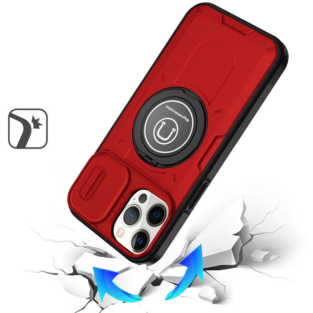 For iPhone 12 Pro Max 6.7 Push Mount Friendly Camera Protective [Ring Stand] Hybrid Case - Red