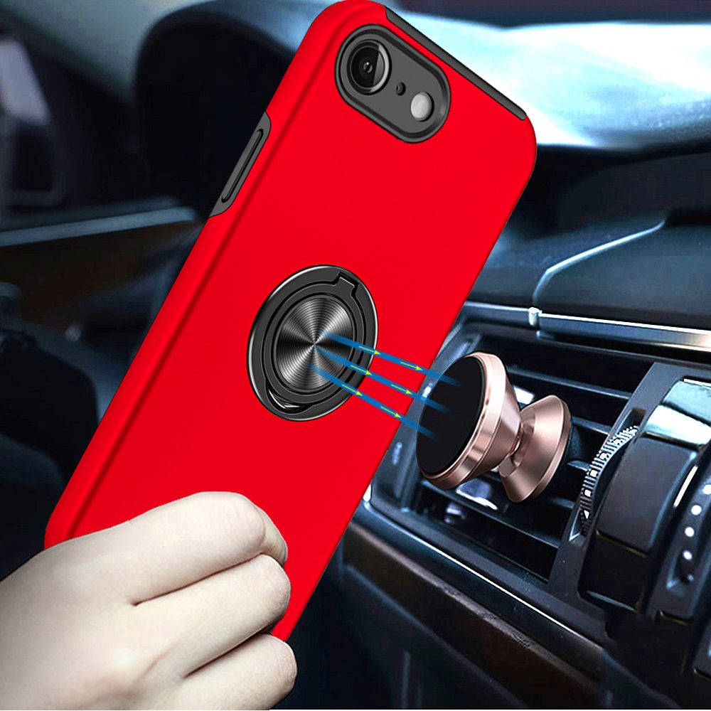 For iPhone 16E (E edition) / SE4 (2025) CHIEF Oil Painted Magnetic Ring Stand Hybrid Case Cover - Red