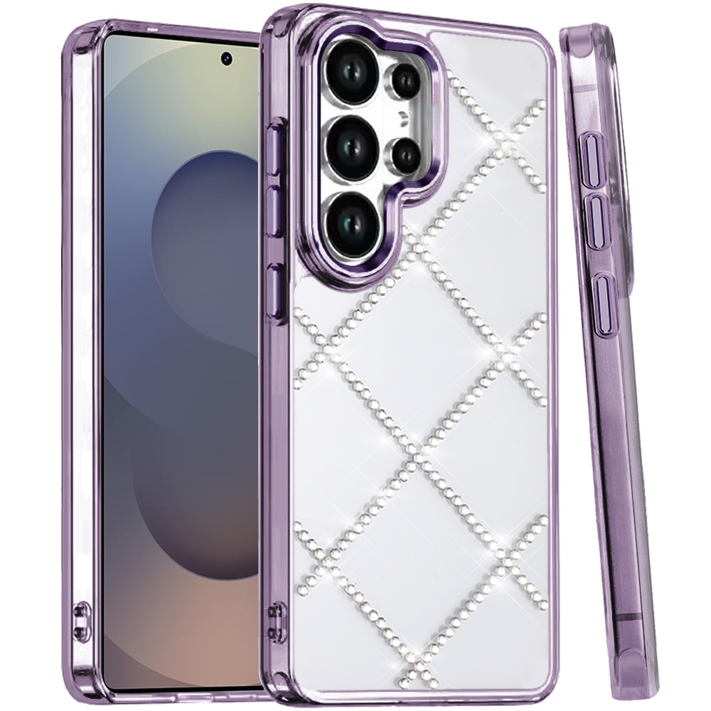 For Samsung s25 Ultra Gem Glitter Diamond Transparent Hard Colorful TPU Hybrid Case - Dark Purple