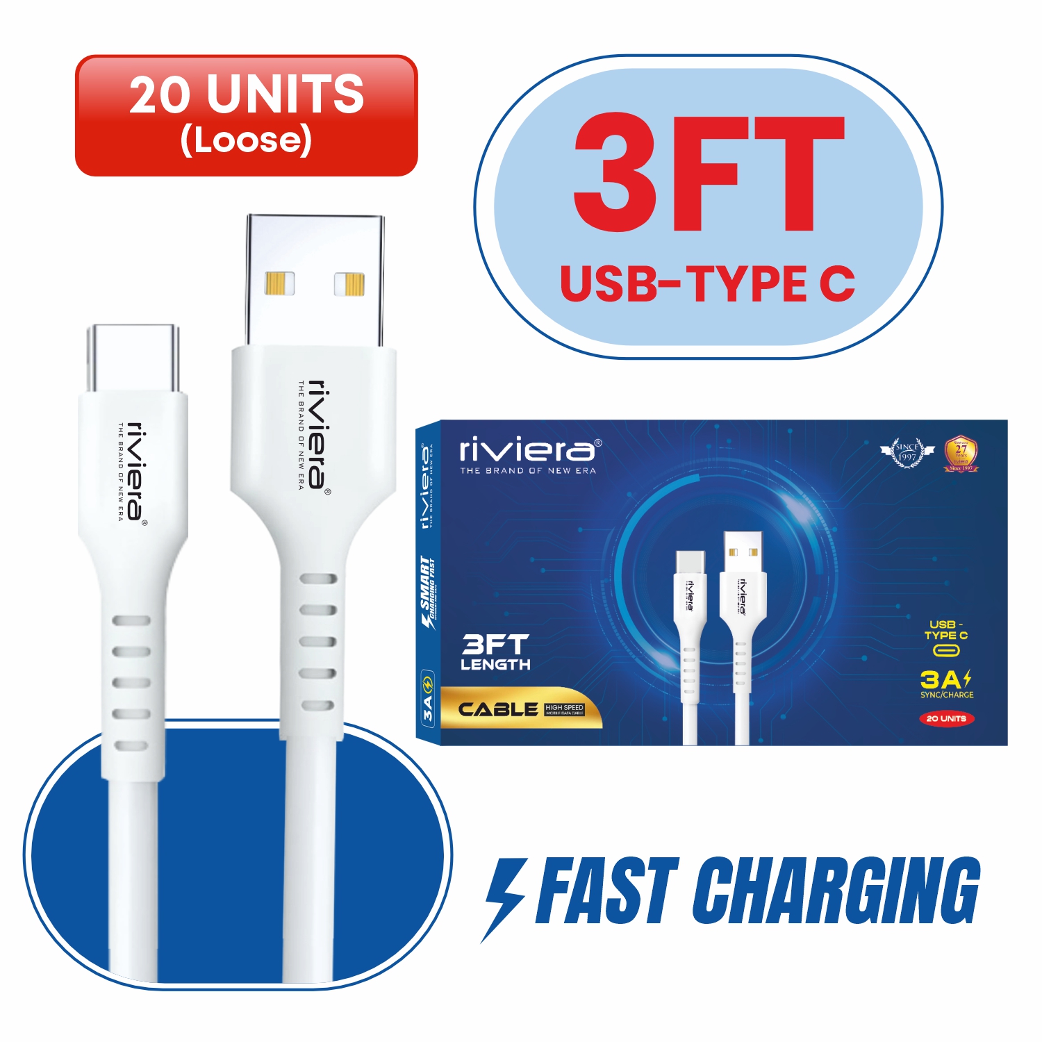 Pack of 20 // CLEARANCE [Samsung A Series Only] [Not for iPhones] - 3FT [USB - Type C (PD)] - White (1)