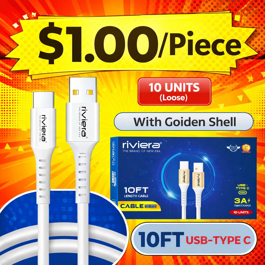 Pack of 10 // CLEARANCE [Samsung A Series Only] [Not for iPhones] - 10FT [USB - Type C (PD)] - White (3)