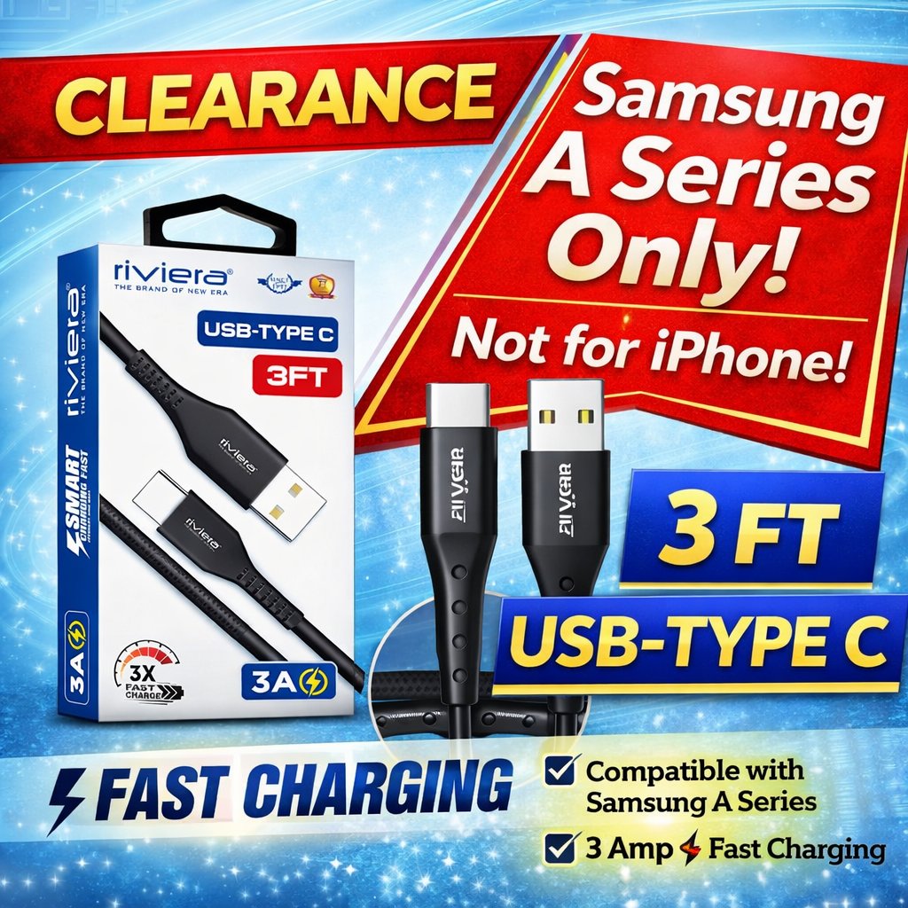 CLEARANCE [Samsung A Series Only] [Not for iPhones] - 3FT [USB - Type C (PD)] - Black (43)