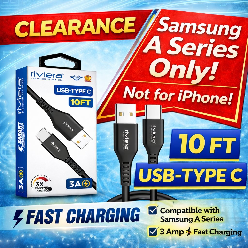 CLEARANCE [Samsung A Series Only] [Not for iPhones] - 10FT [USB - Type C (PD)] - Black (45)