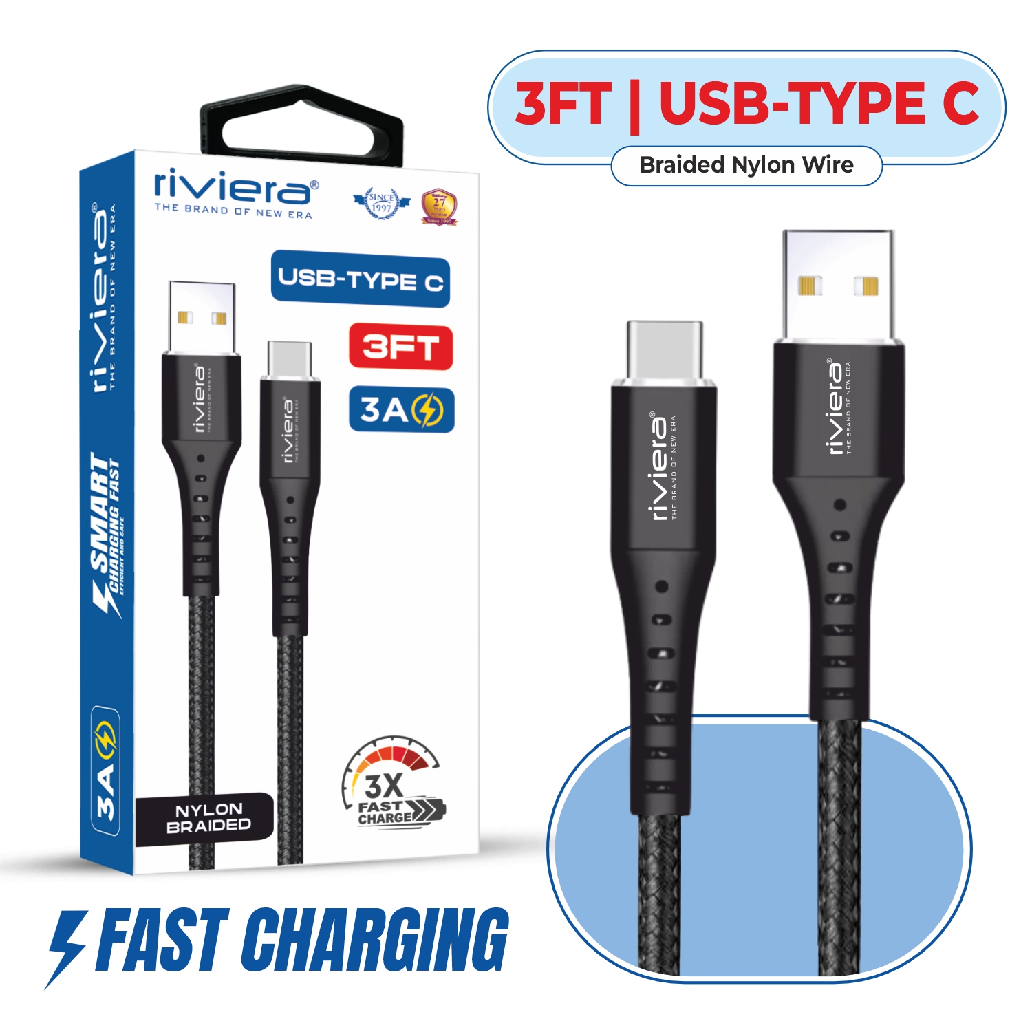CLEARANCE [Samsung A Series Only] [Not for iPhones] - 3FT [USB - Type C (PD)] Nylon Braided - Black w/ Black Shell (67)