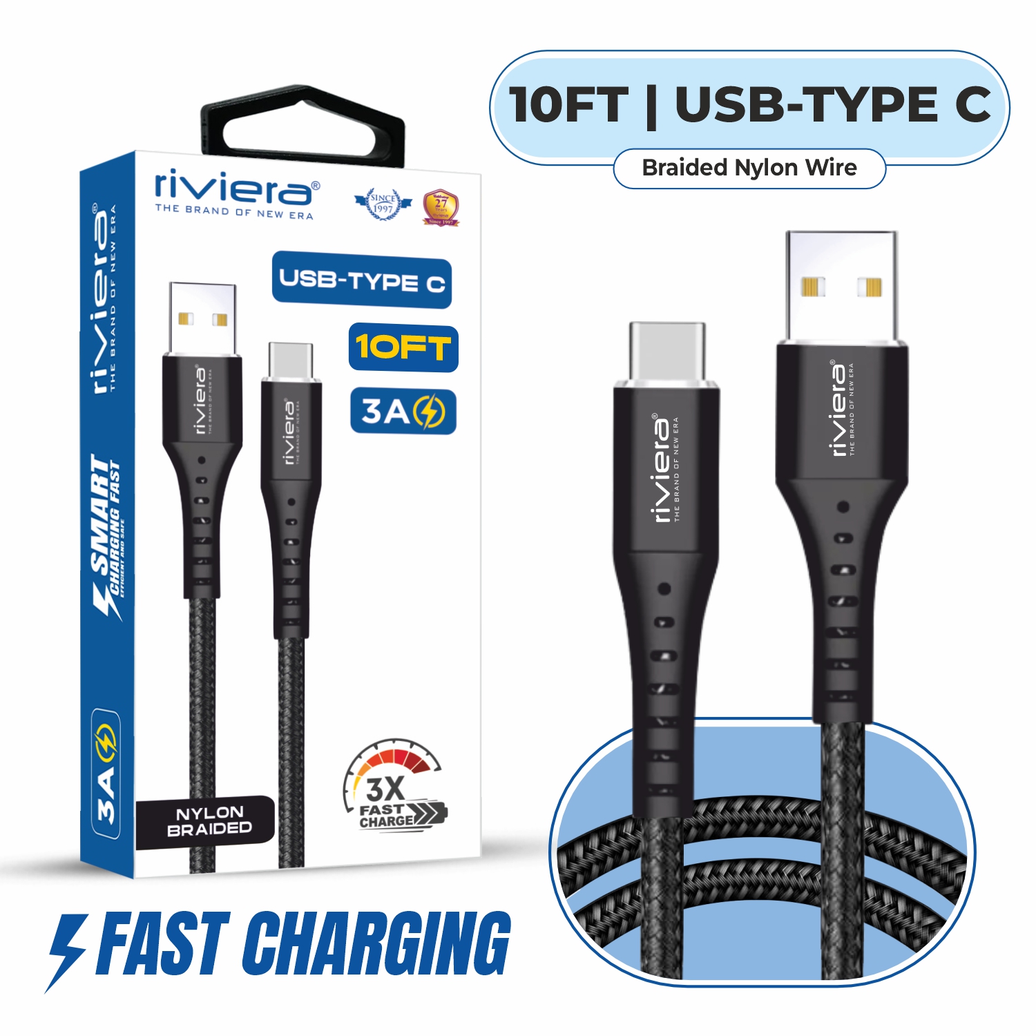 CLEARANCE [Samsung A Series Only] [Not for iPhones] - 10FT [USB - Type C (PD)] Nylon Braided - Black w/ Black Shell (69)