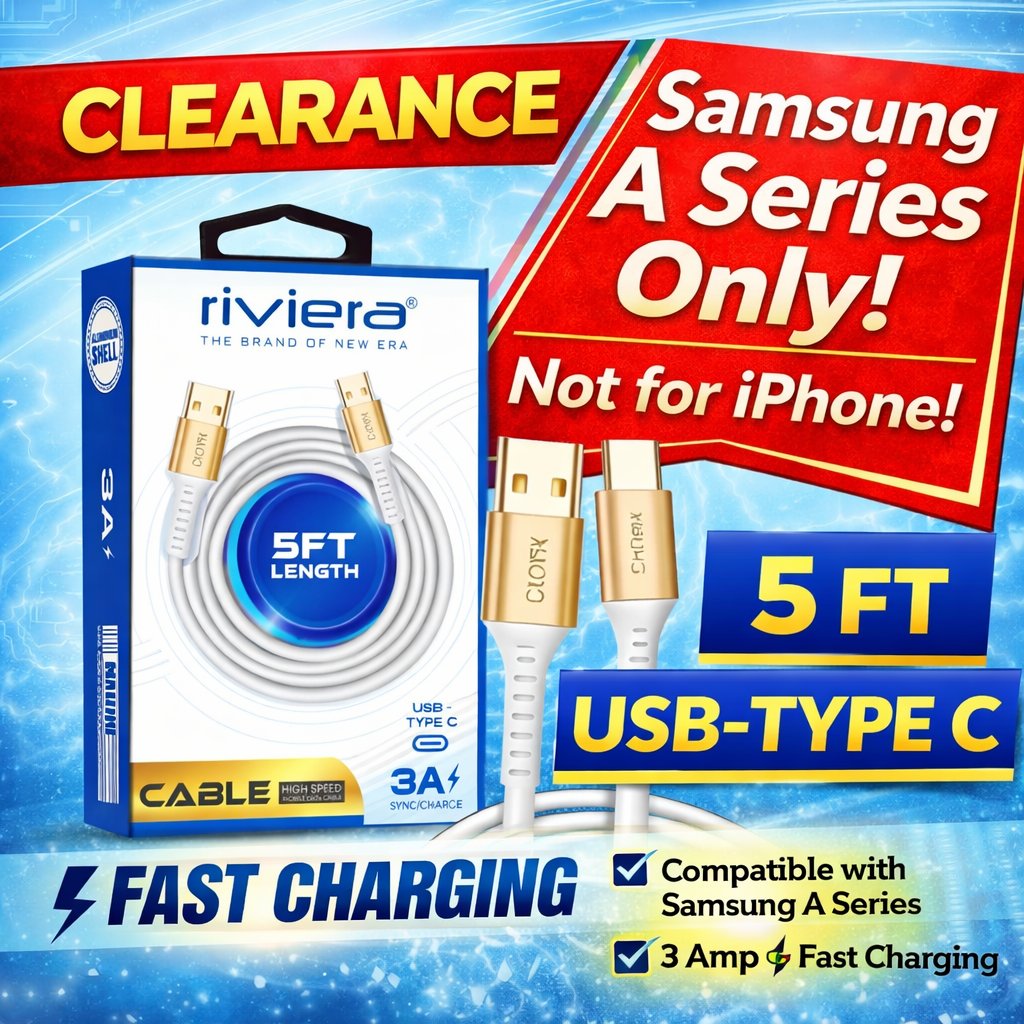 CLEARANCE [Samsung A Series Only] [Not for iPhones] - 5FT [USB - Type C (PD)] - White w/ Golden Shell (74)