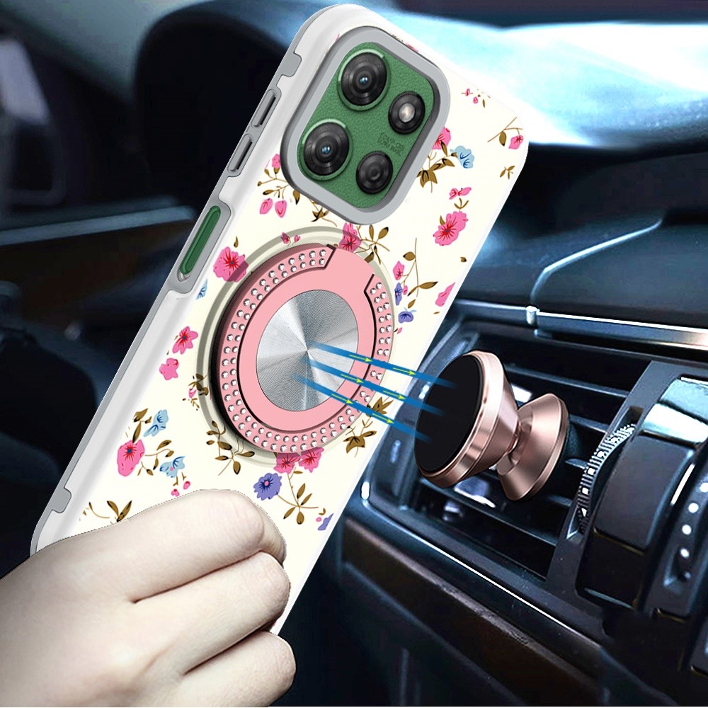 For Motorola Moto G Power 5G 2025 Metal Diamond CD Pattern Design Matte Finished Hybrid with Rotational Ring [Car Mount Friendly] Case - 8