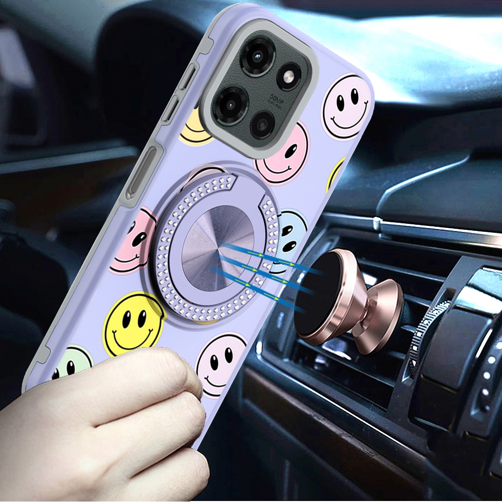 For Motorola Edge 2025 Metal Diamond CD Pattern Design Matte Finished Hybrid with Rotational Ring [Car Mount Friendly] Case - 5