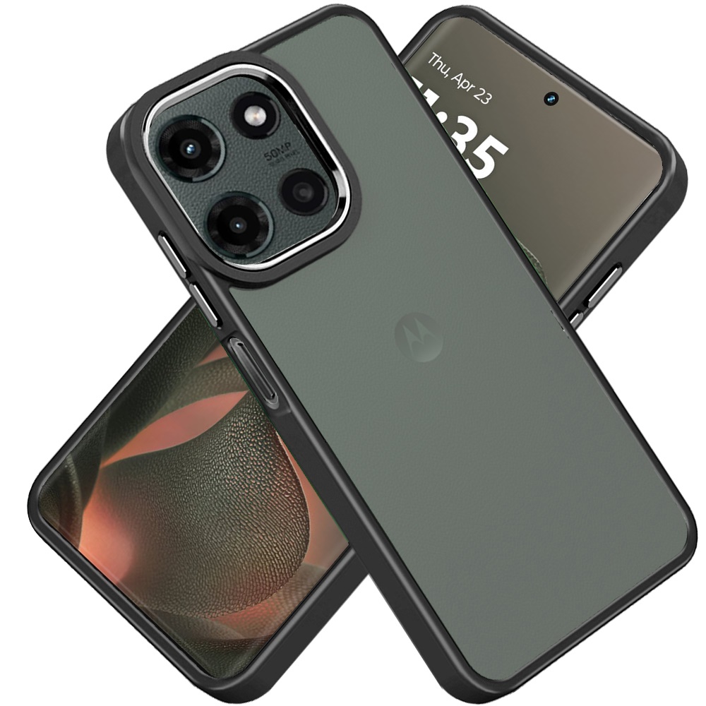 For Motorola Edge 2025 Polished Oil Thick Acrylic Metal Button Hybrid Case Cover - Black
