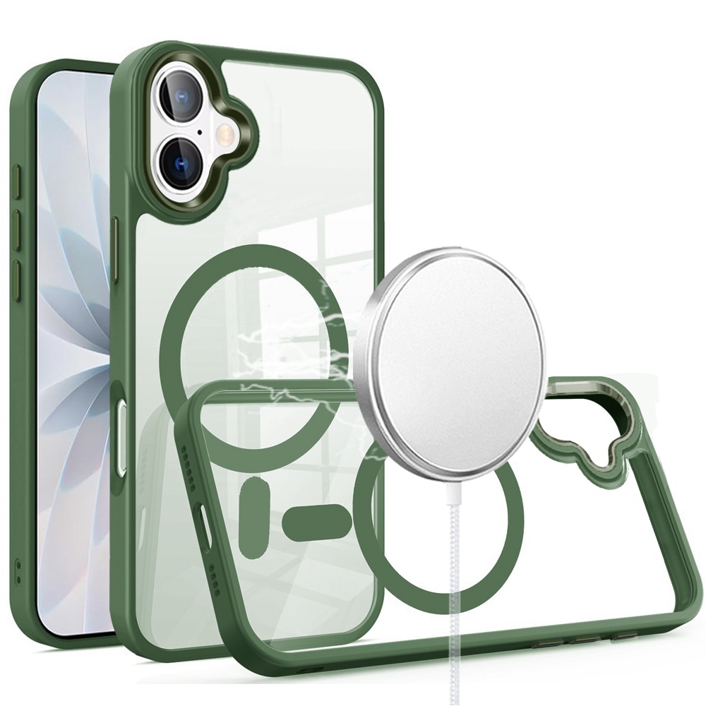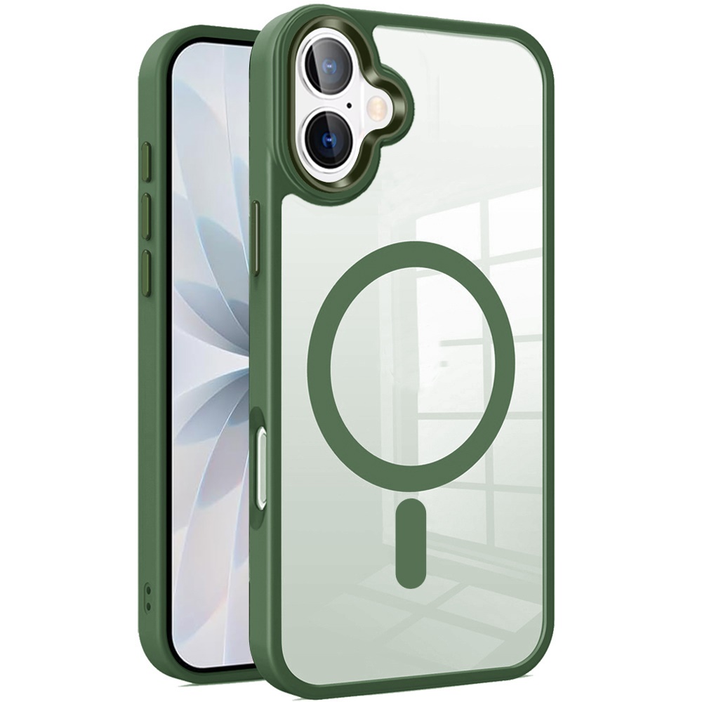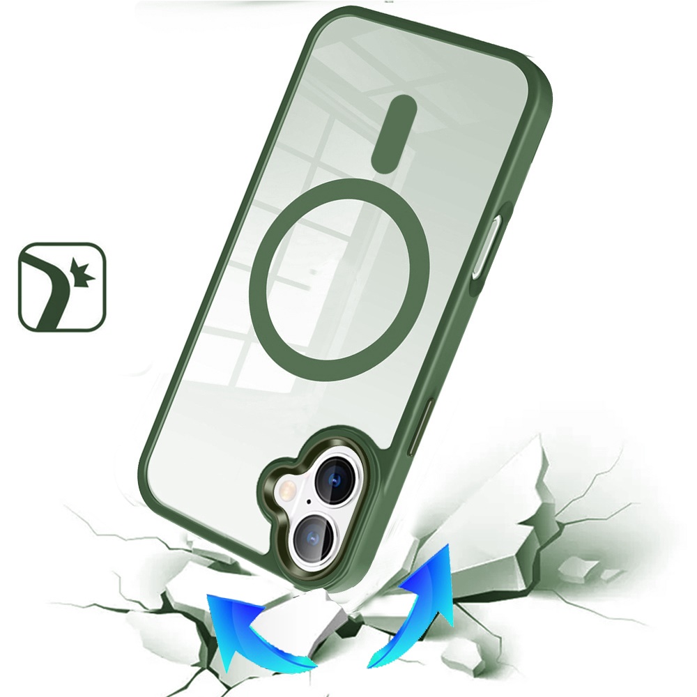 For iPhone 17 Greatest Clear Acrylic [Magnetic Circle] ShockProof ToughThick Metal Button Hybrid - Midnight Green