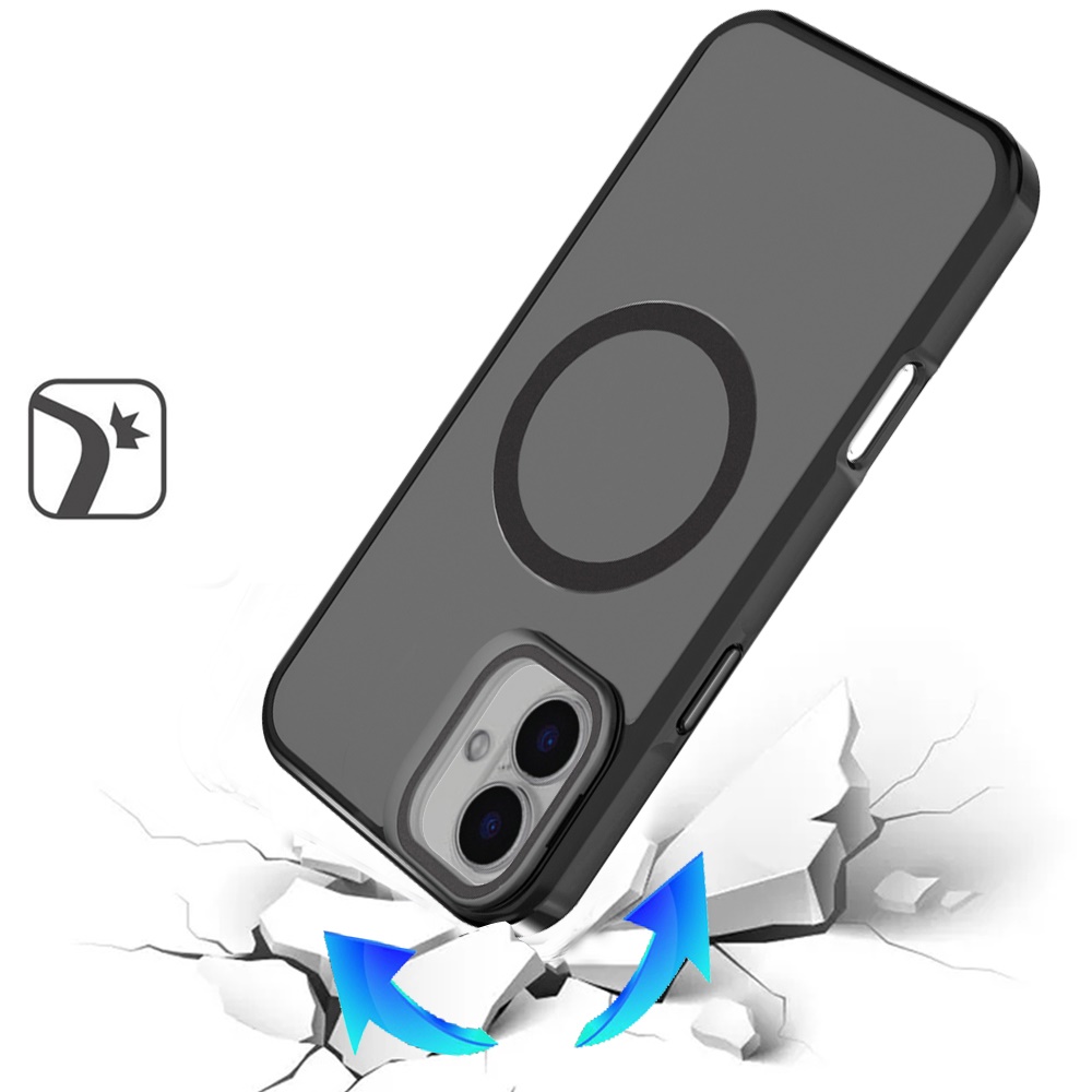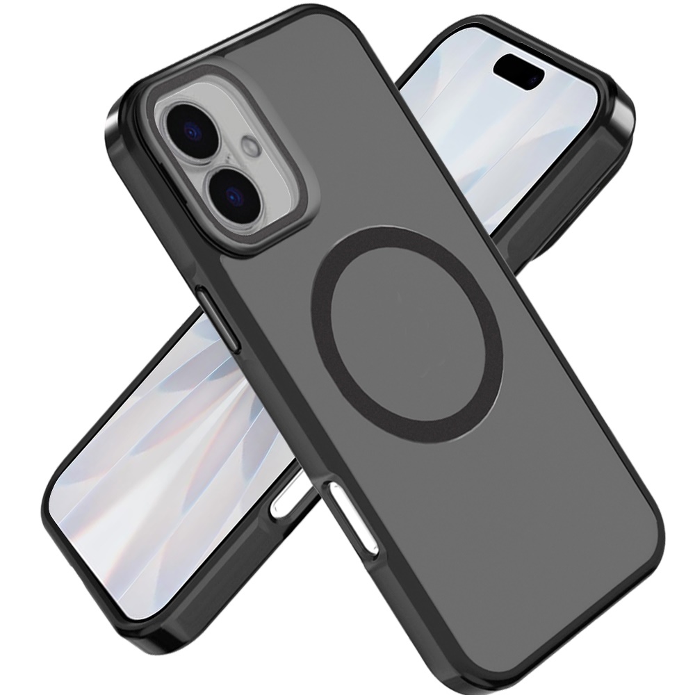 For iPhone 17 Frame Aluminium Camera Stand Metallic Buttons [Magnetic Circle] Tough HQ Hybrid Case - Black