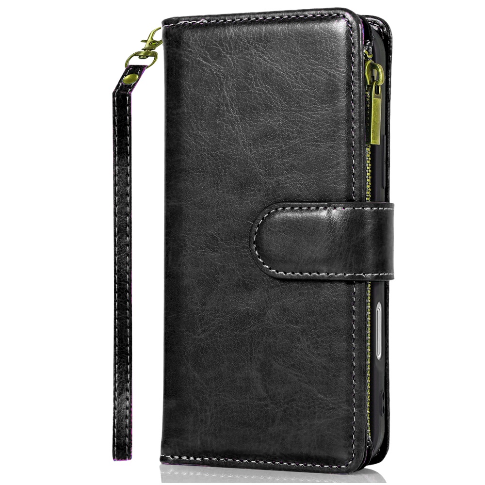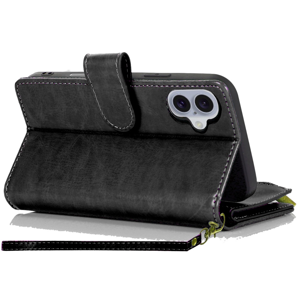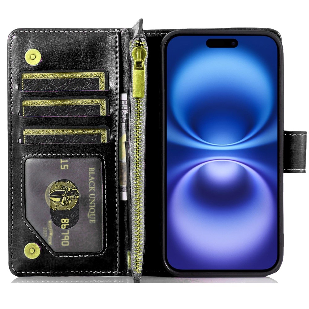 For iPhone 17 Luxury Wallet Card ID Zipper Money Holder Case Cover - Black