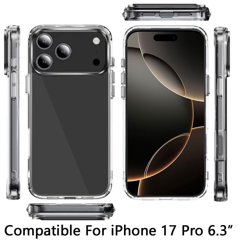 For iPhone 17 Pro PURE CRYSTAL Transparent Thick 2.0mm ShockProof Chromed Buttons Case Cover - Clear
