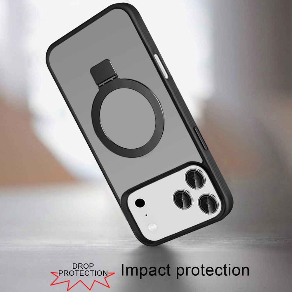 For iPhone 17 Pro Skin Touch Feel HQ [Magnetic Circle] Kickstand Hybrid - Black