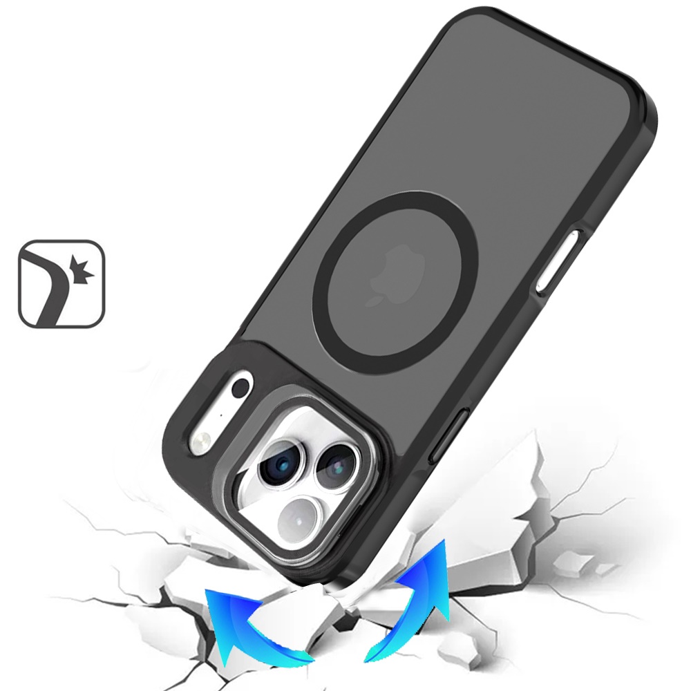 For iPhone 17 Pro Frame Aluminium Camera Stand Metallic Buttons [Magnetic Circle] Tough HQ Hybrid Case - Black