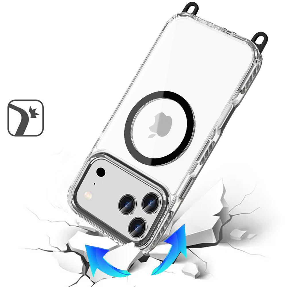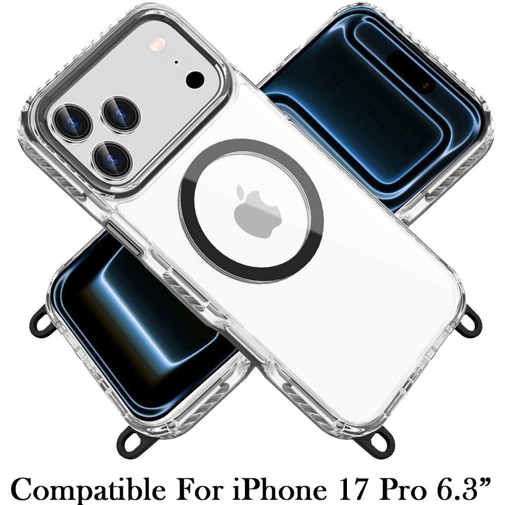 For iPhone 17 Pro Transparent HQ Clear Line Design Edged Hybrid [Magnetic Circle] with Matching Lanyard - Black